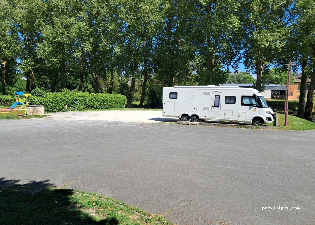 impeccable 3 camping-car cette nuit accès très facile et air de jeu pour enfant attenant. nous avons mis nos petites calles pour être de niveau. air gratuit eau à disposition avec bouton poussoir.et vidange. parfait pour une pause nocturne. merci à la municipalité .