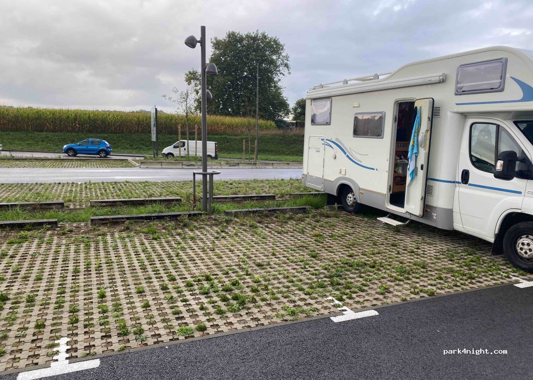 En fait il s'agit d'une aire de covoiturage avec plein de places. Suffisant pour une nuit de passage sans service. Pas eu de soucis pour la nuit.