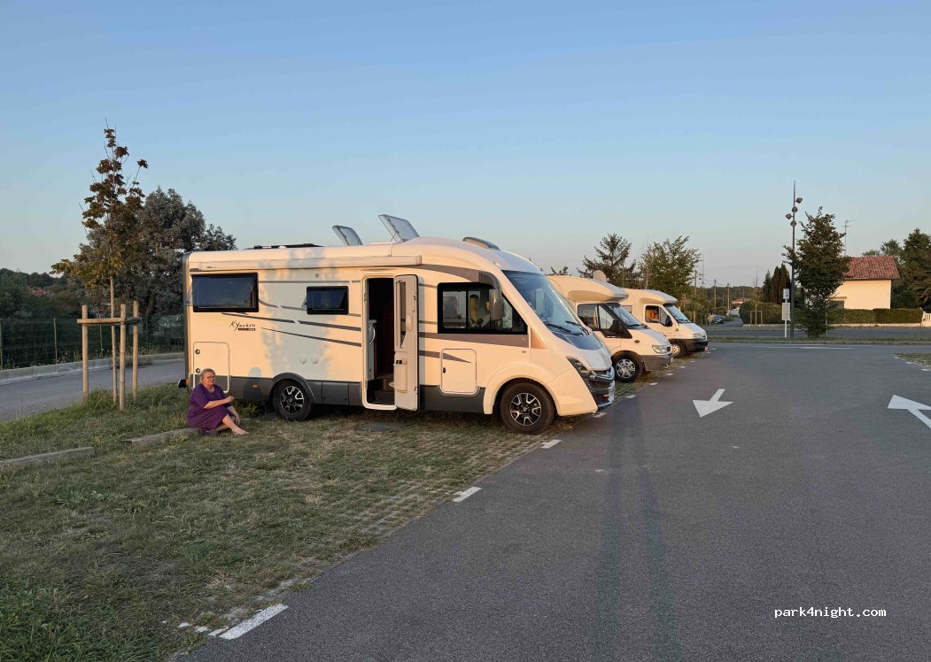 Parking gratuit, pas de restrictions de hauteur, idéal pour un arrêt dodo sur la route de Bayonne. Un peu bruyant mais ça ne nous a pas dérangé