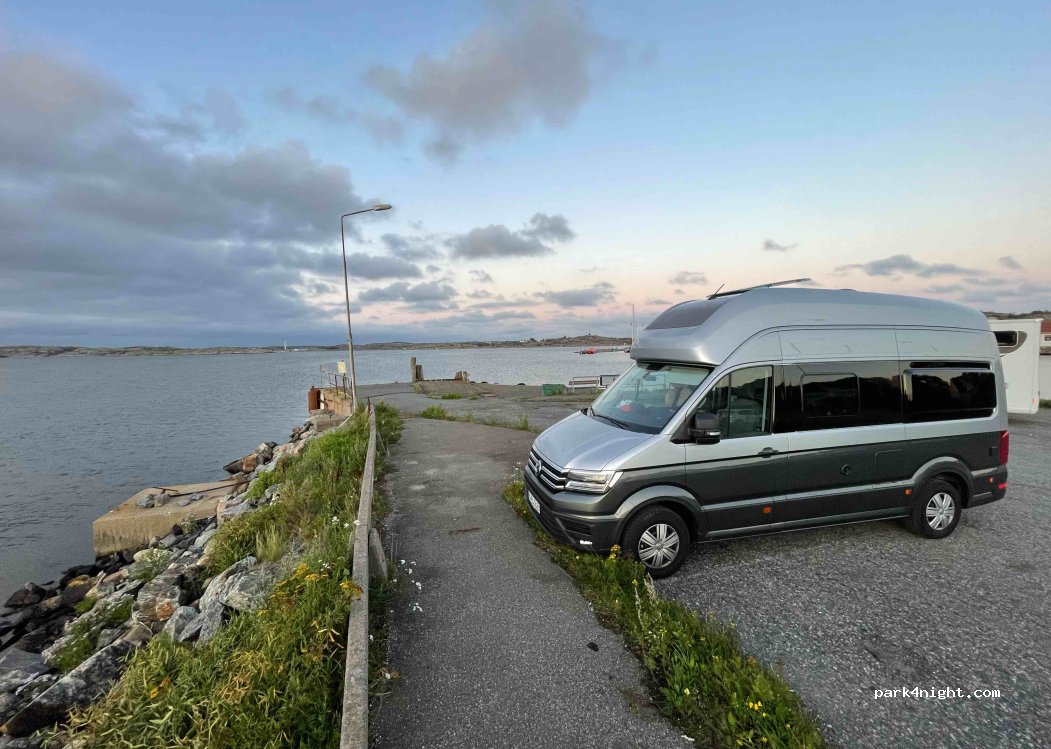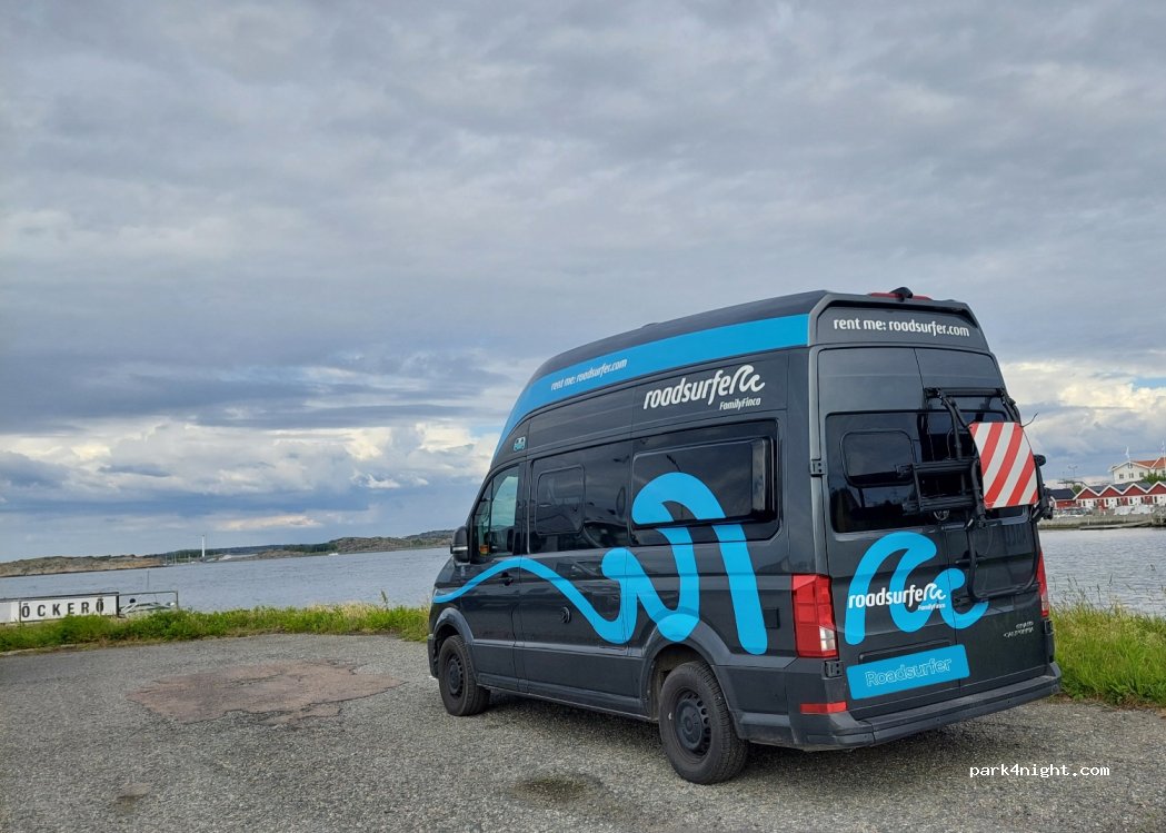 Öckerö, dans un ancien terminal de ferry. Point de collecte des ordures discret. Juste au bord de l'eau. calme la nuit.