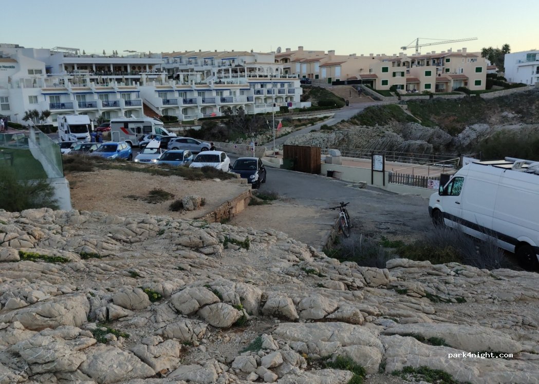 Calle cortada muy amplia, tranquila, pasa camión de la basura a las 23:15 y después silencio, tiene inclinación y contenedores de basura. Práctica para pasar la noche y bañarse en Cala Mesquida.