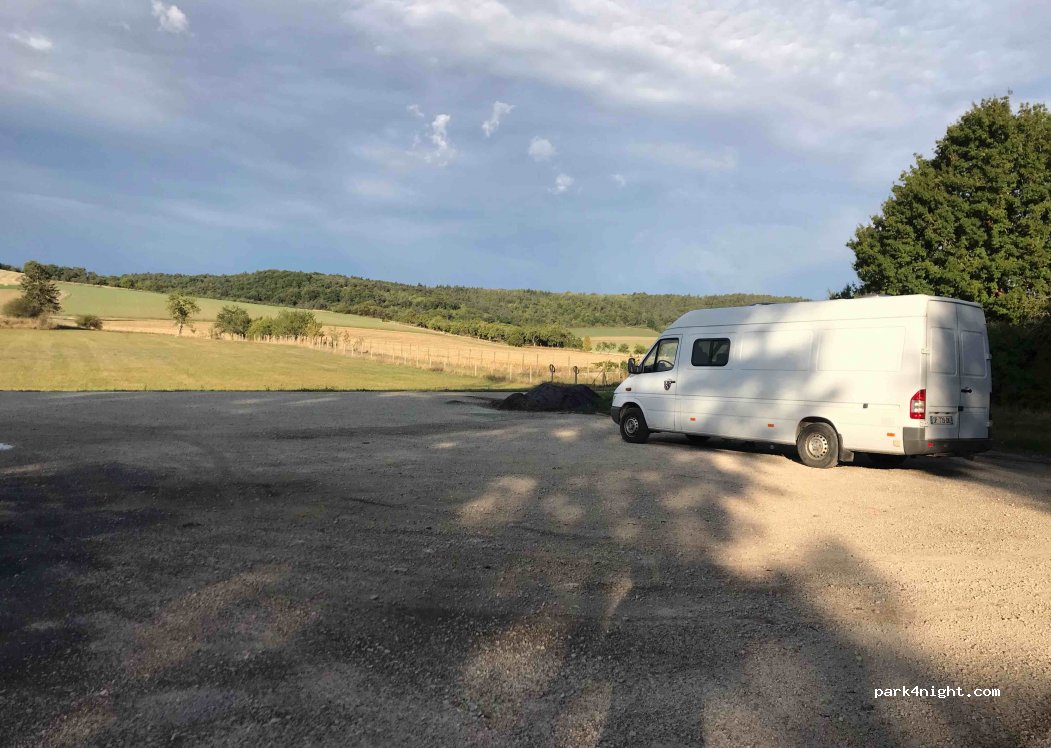 Parking très calme à proximité d’un ruisseau (ruisseau pas très bien accessible). Il y a parfois une ou plusieurs remorques PL stationnées mais on trouve beaucoup de place à côté. Une petite usine travaillant le bois n’est pas très loin mais très faible nuisance sonore. Idéal pour une nuit et une bonne rando entre champs, vergers et forêts. Ah oui aussi, électron-sensible s’abstenir car au bord du parking se trouve une immense antenne relais téléphone…Le top pour capter les données par contre…