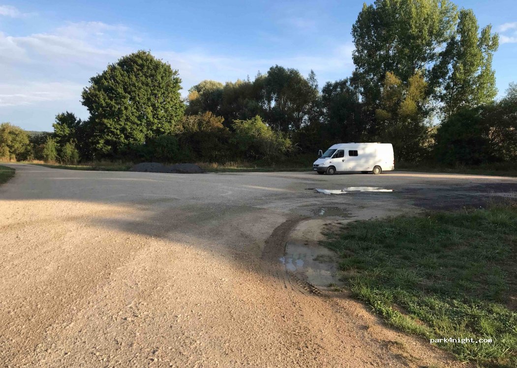 Sehr ruhiger Parkplatz in der Nähe eines Baches (Bach nicht sehr gut zugänglich). Manchmal parken ein oder mehrere LKW-Anhänger, aber es gibt viel Platz in der Nähe. Eine kleine Holzverarbeitungsfabrik ist nicht weit entfernt, aber sehr geringe Lärmbelästigung. Ideal für eine Nacht und eine gute Wanderung zwischen Feldern, Obstgärten und Wäldern. Ach ja auch, elektronensensible Finger weg, denn am Rande des Parkplatzes steht eine riesige Telefon-Relaisantenne… Das Beste zum Erfassen von Daten dagegen…