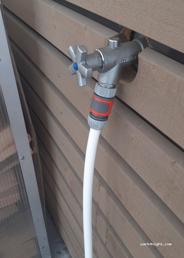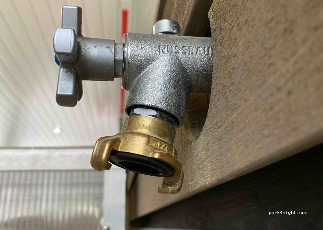 Der Wasseranschluss (Gewinde) wurde gewechselt. Es passt nicht mehr für die handelsüblichen Schläuche. Die Frau an der Kasse erlaubte aber Wasser für das Wohnmobil abzufüllen.