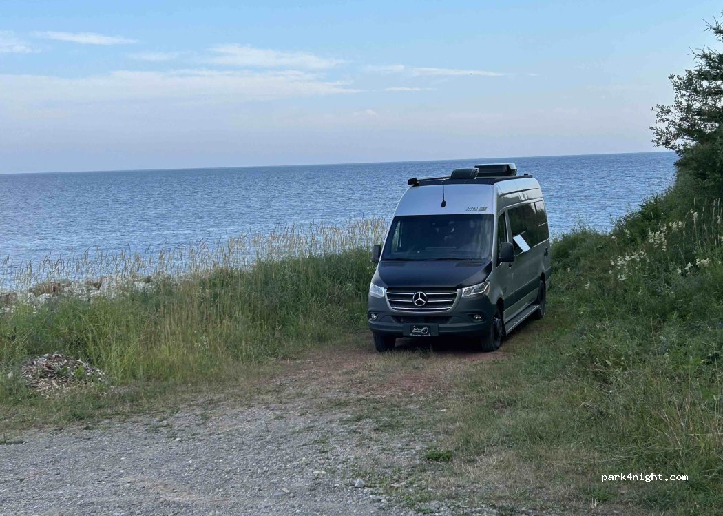 Belle endroit, le stationnement est petit et un peu en pente. Nous avons quand même réussi a nous stationner a un niveau tolérable puisque nous étions seul dans le stationnement. Il y a une toilette chimique en haut de la côte. La police est venu faire une ronde de sécurité en fin de soirée. Nous avons profité de leur présence pour confirmer que nous pouvions passer la nuit.