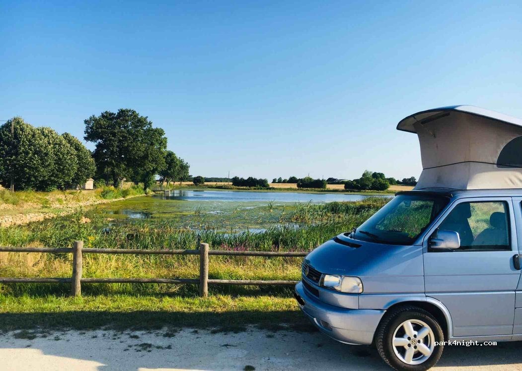 Petit coin au calme au bord d'un petit étang. De la place pour 4/5 véhicules. Coin très agréable.