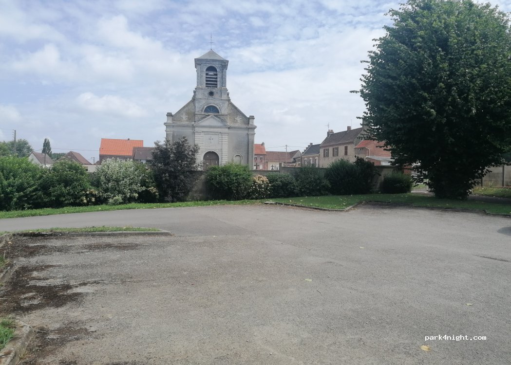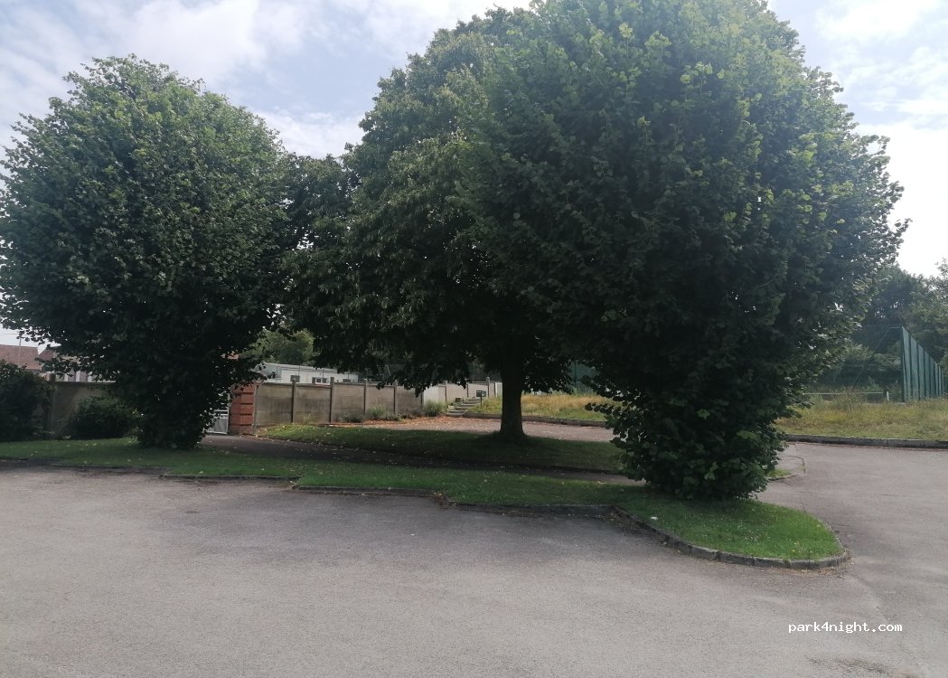 Petit parking prêt du cimetière et du terrain de tennis. Nous y sommes arrêtés pour déjeuner un dimanche. Personne sur le parking.