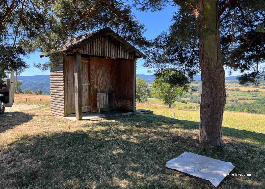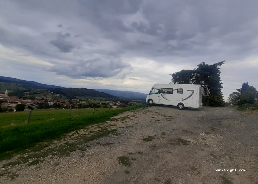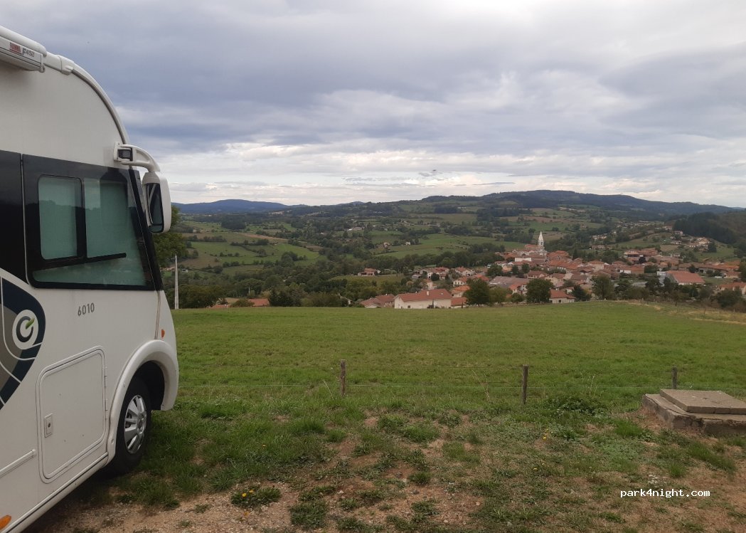 Très jolie vue sur le village, il y a des tables de pique nique, un point de vue presque 360. Nous n'étions que 2. Il y a des toilettes, de l'eau et un point de vidange. Un peu gênée par des chiens qui ont aboyé dans la nuit.