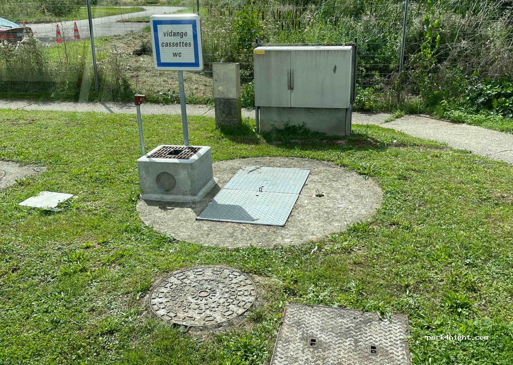 Aire de service, avec station-service Fulli. Petit café. Possibilité de stationnement gratuit. Remplissage eau potable / Vidange eaux grises et noires.