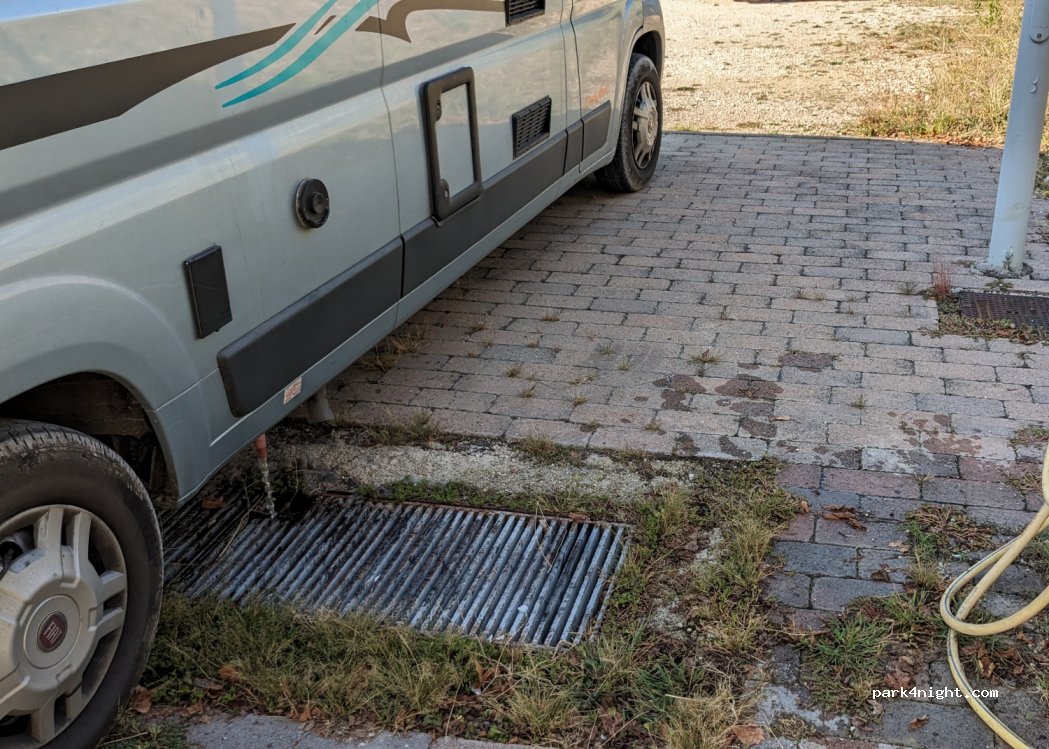 Luogo tranquillo per il pernottamento. Carico e scarico funzionanti. Le piazzole sono ampie ma avrebbero bisogno di manutenzione (crescono erbacce). Grazie comunque all’amministrazione comunale per il servizio