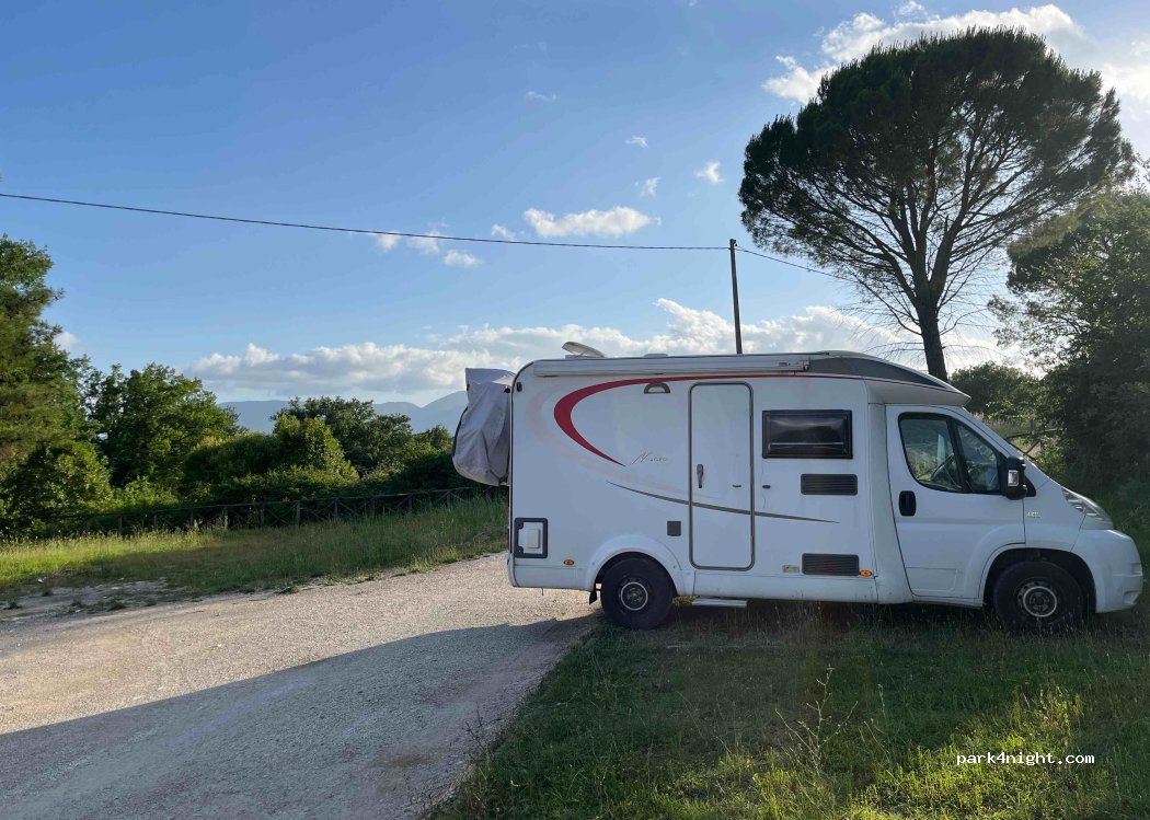 Parking gratuit (pour voitures et camping-cars) avec services de chargement et de déchargement : il est situé près du Centre Sportif Calisto, à proximité d'une petite aire de jeux pour enfants. Il a accès au sentier pédestre littéraire qui mène à Castel Ritaldi, une terre de contes de fées. A deux pas des commerces et services, le parking est très basique, mais utile pour visiter les nombreux petits villages du coin. Arrêt de bus sur place.
