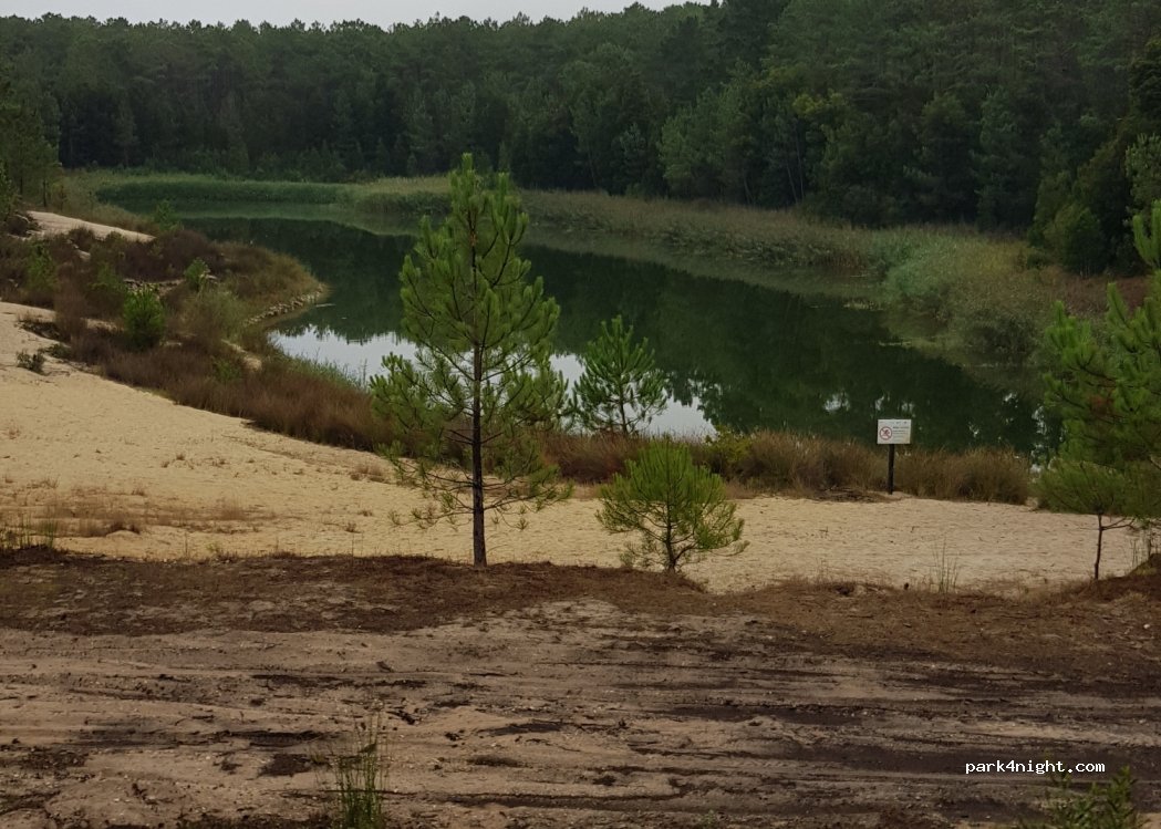 Isolé dans une forêt de pins, il y a un petit lacs avec tables, poubelles et barbecue. Le spot est situé en bordure d'une route forestière sans fréquentation la nuit