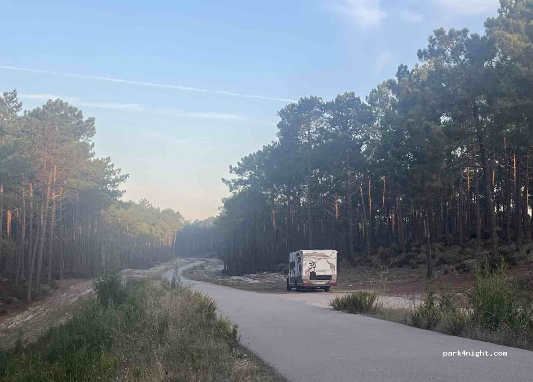 Magnifique cadre, une place seulement pour camping car, au bord de route ce garer uniquement ou il y a des gravions sinon vous risquer de vous embourbé. Sol relativement plat, journée et nuit au calme. Et à proximité de nazaré.