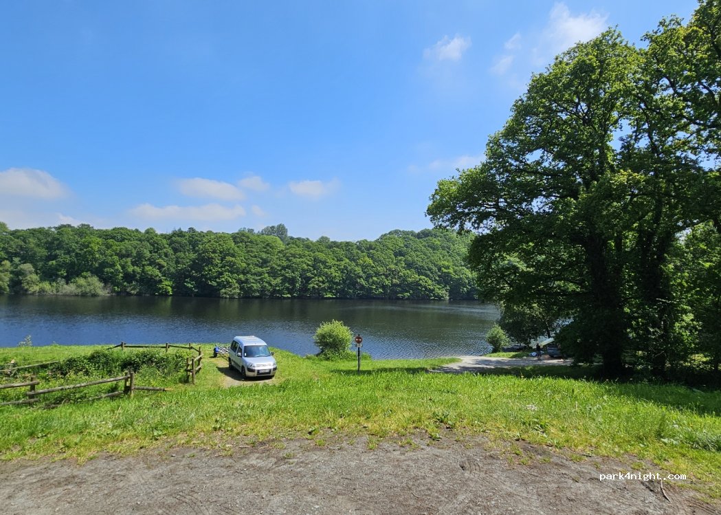 Parking au bord du lac mais peut être bruyant avec la route départementale à proximité. Pas d interdiction pour dormir. Joli point de vue. Idéal pour mise à l eau kayak et départ de randonnée.