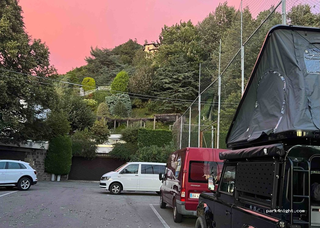 Nous avons passé une nuit au calme mais il faut savoir qu’il n’y a pas de vue, ni de toilette. Le parking est difficile d’accès (ok dans notre cas avec une voiture avec tente de toit) et à côté d’un terrain de football. L’acces vers Côme avec funiculaire n’est pas aussi facile que ce qu’on pensait car pendant la journée il faut bien attendre 45 min