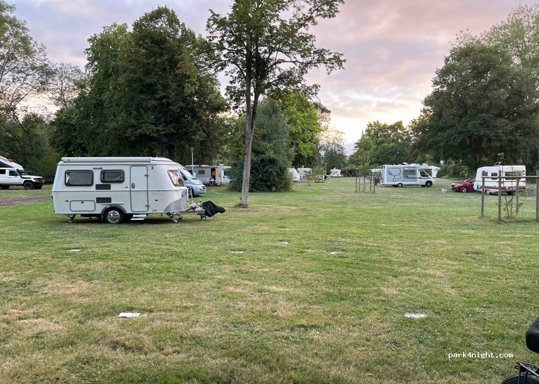 An excellent site for access to the beautiful town with cathedral. Parking on grass next to the Loire. Whilst we were there it was dry and sunny, so I think it would be a bit wet underfoot if raining. Toilet facilities perfectly adequate, with friendly helpful hosts. A nice site, with all requirements.