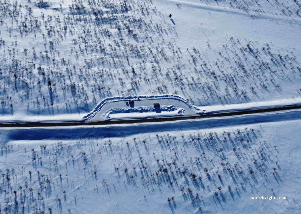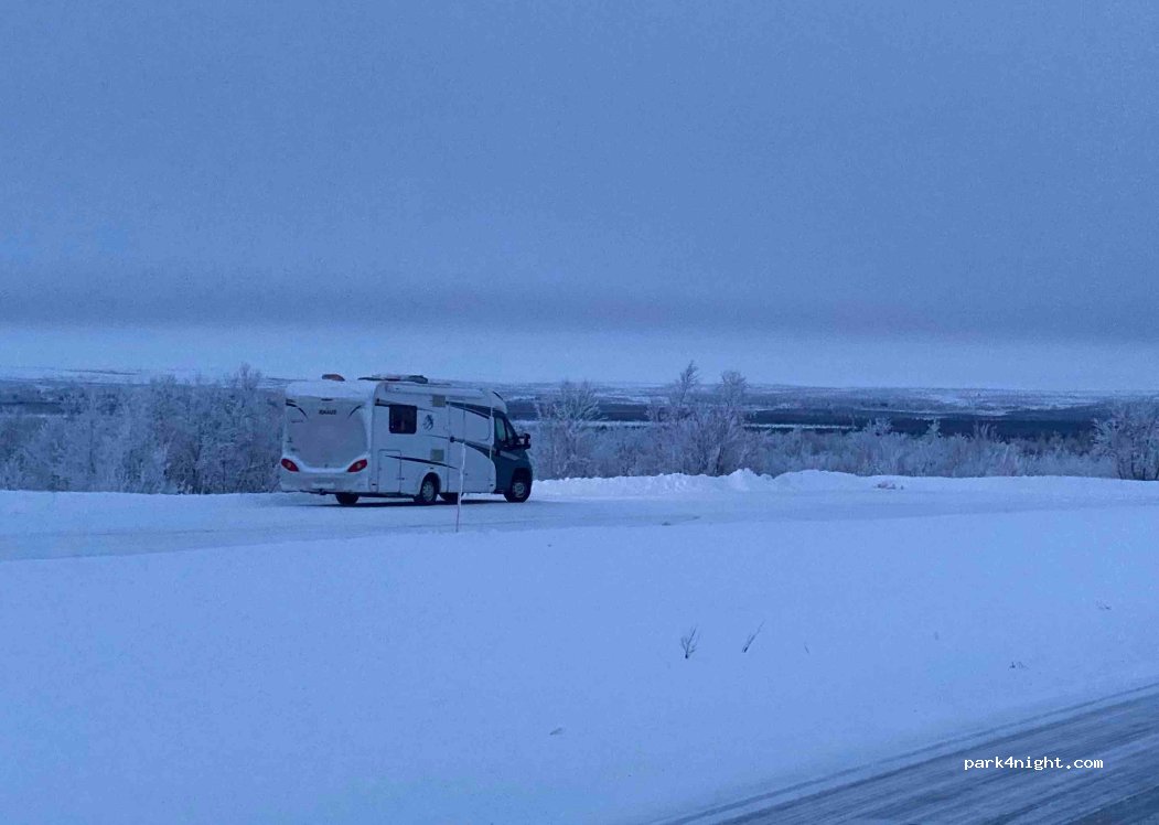 Ein Parkplatz auf einem Hügel mit weitem Blick bis zum Horizont. Super guter Ort, um das Nordlicht zu beobachten. Die nächste Einrichtung ist 30 km entfernt. Wenig Verkehr, ruhiger Aufenthalt.