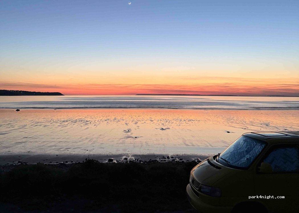 Une vue et un coucher de soleil à couper le souffle. Très calme, peu de passage. Excellent spot pour un van malgré les quelques algues vertes.