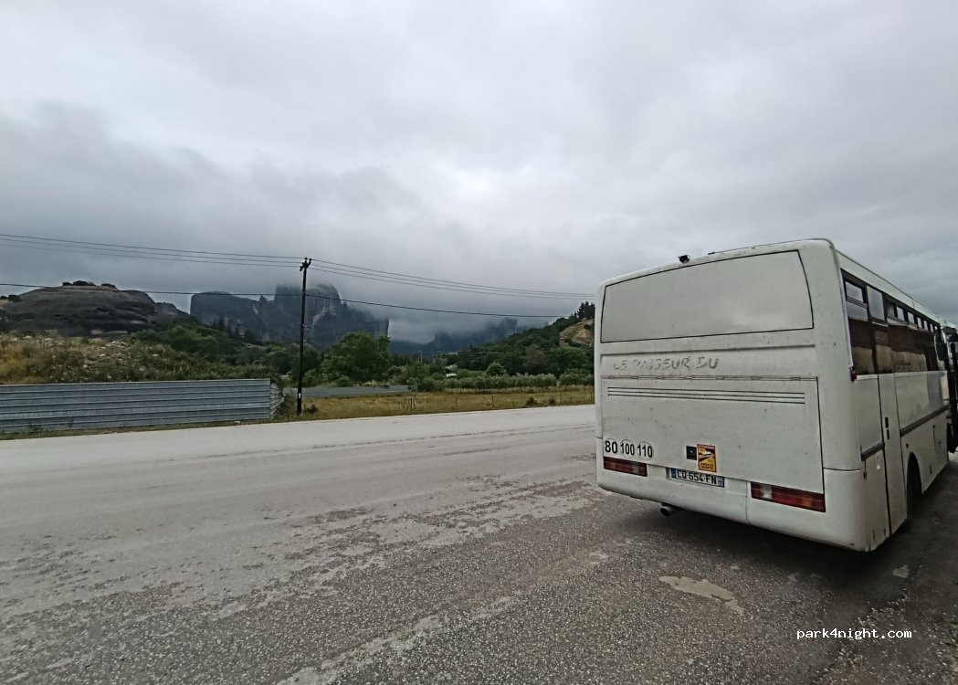un simple parking mais très vaste et avec vu sur les Météores. Parfait pour la visite des Météores