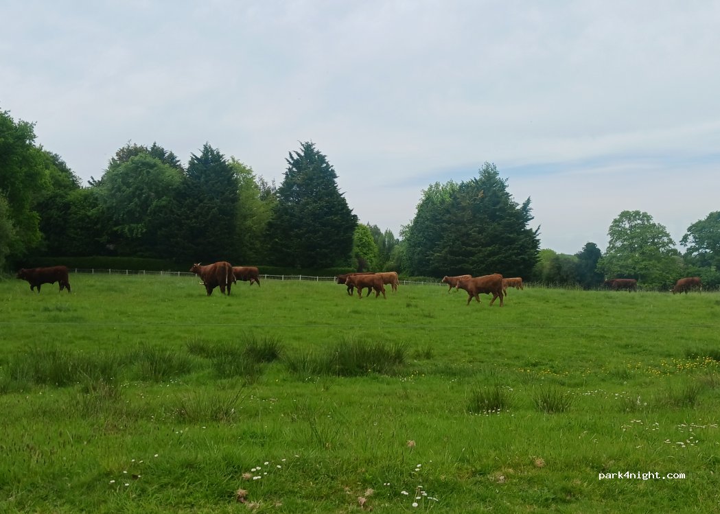Parking très calme ,agréable et spacieux ( eau mais pas de vidange possible,idéale pour une é tape présence de vaches et de chevaux à proximité :intéressant pour les enfants