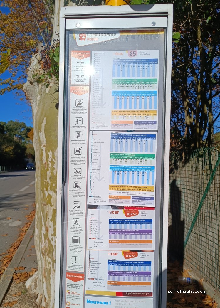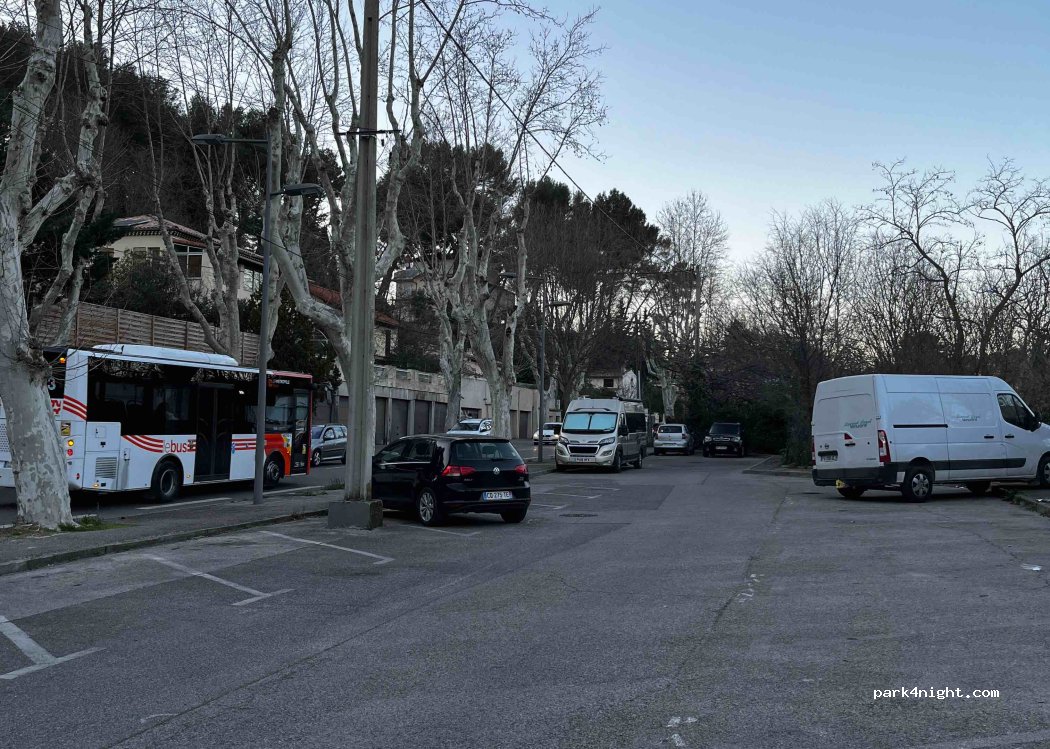 Buen lugar para poder visitar Aix en Provence. Es un espacio junto a una carretera con muy buena comunicación en autobús al centro de la ciudad. Parquing de pago con espacios para autocaravana grande. Lugar muy tranquilo para pernoctar aunque bastante tránsito por la mañana. Pernoctamos una noche sin problemas.