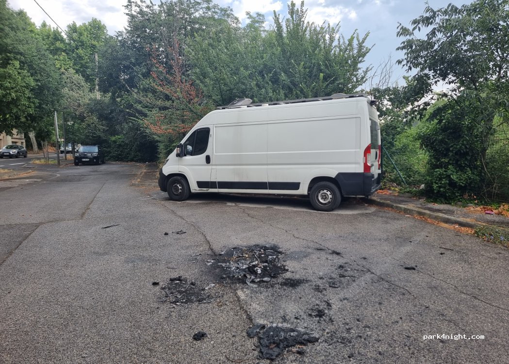 die Parkplätze am Anfang und Ende sind für kleine Camper geeignet. es liegt viel Müll Rum und die Straße ist werktags ab 6 gut befahren. zwischen 8-12 und 14-19 zahlt man 1,5€/h. solide Option für die Stadterkundung und eine Nacht :)