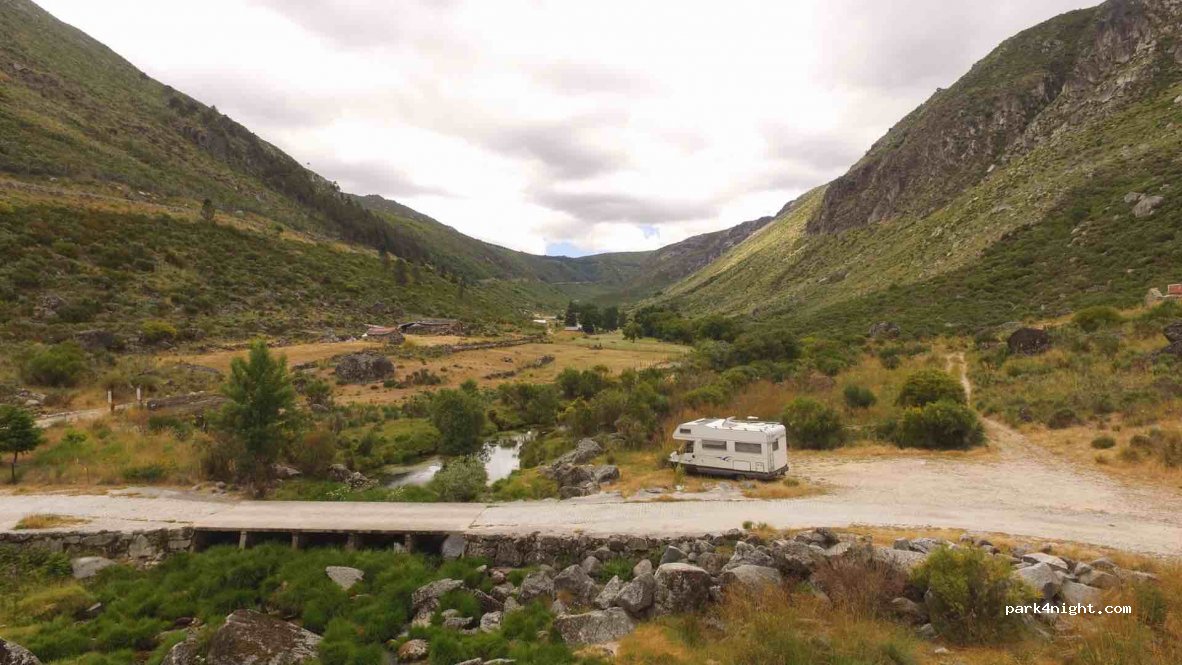 Great place next to Rio Zezere, space for about 6 vans. When we arrived in the afternoon a herd of goats was just passing by and their shepherd offered us some great cheese. Local guy also staying in a camper was a bit sad that it is no longer a secret place due to p4n as it used to be.