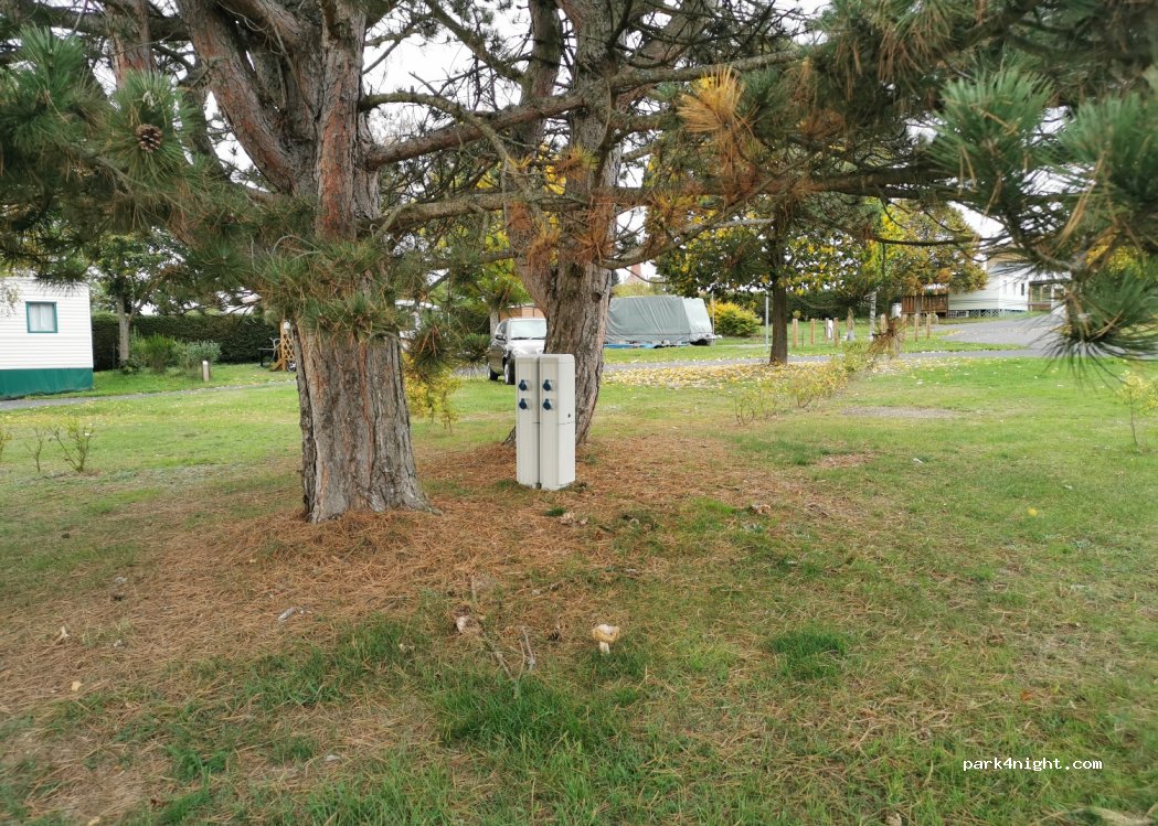 Ruhiger kommunaler Campingplatz mit Bäumen. Tabakschrankenöffnungskarte mitnehmen
