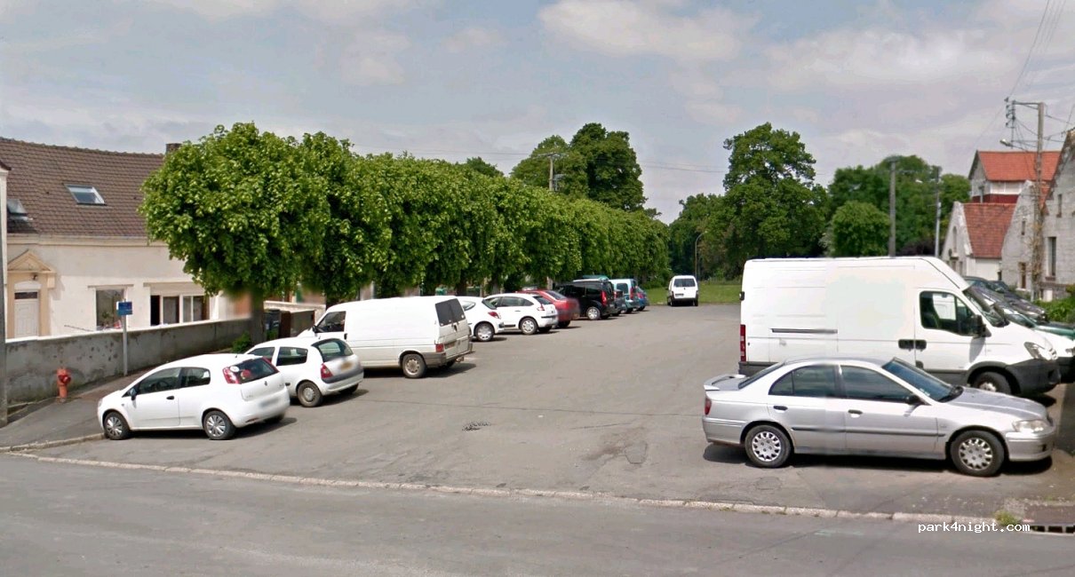 Rustig op een soort dorpsplein. Niet allemaal even recht , maar valt te doen als je niet re veeleisende bent. wij stonden dwars op de stoeprand met de voorwielen erop. Gratis geen voorzieningen ! maar beschut !