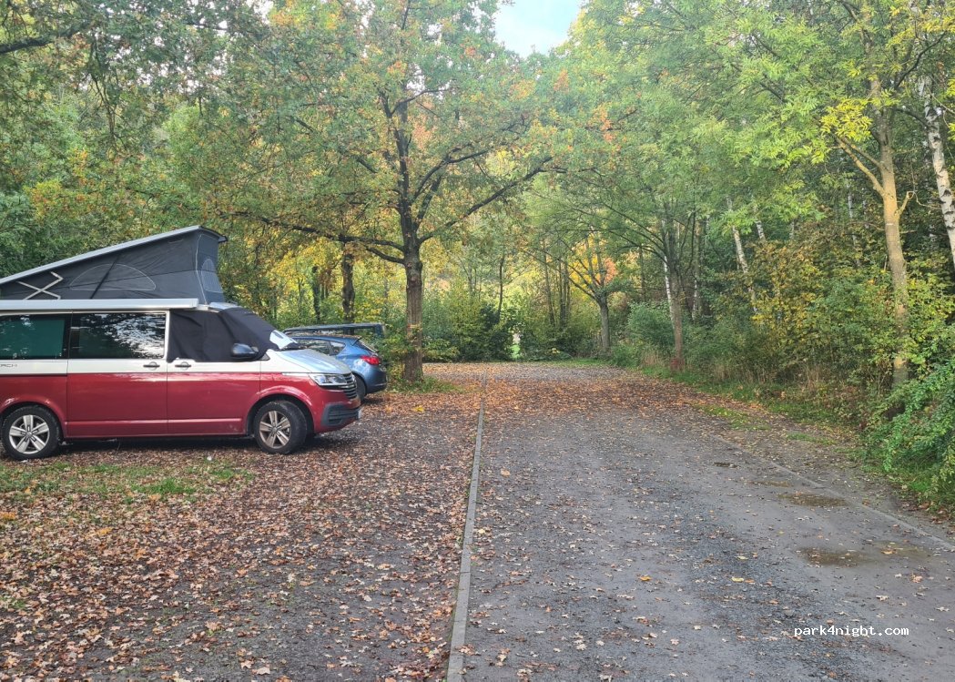 Guter Platz für eine Nacht. Straßenlärm leicht hörbar. Größere Fahrzeuge können dort ebenfalls parken. Aber es ist gut möglich, dass der Pendlerparkplatz innerhalb der Woche befüllt ist.