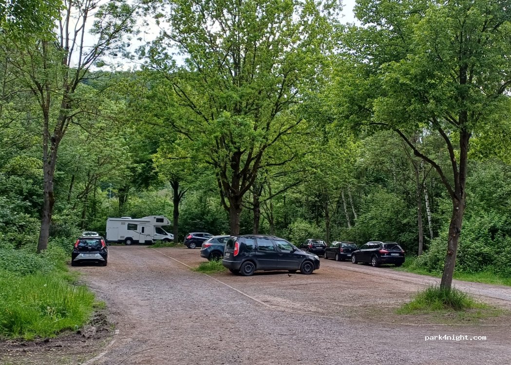 An der strasse gelegener Parkplatz in einem kleinen Wäldchen. Kies Untergrund. Nichts los. Ideal für 1 Nacht
