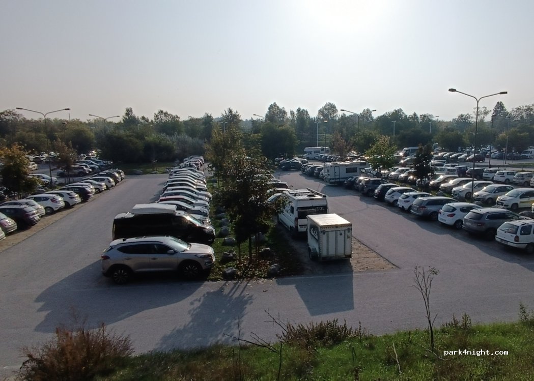 Posteggio adatto al pernottamento nel caso la piccola area sosta sia al completo. Non abbiamo notato auto sospette aggirarsi nel parcheggio, nonostante siamo rientrati abbastanza tardi; anzi lo abbiamo trovato molto silenzioso nonostante sia molto vicino alla città.