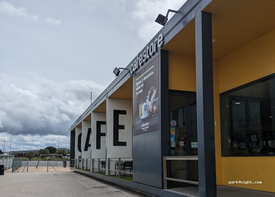 Paramos para descansar ya que conducimos de noche, descansamos 3 horas muy tranquilos. En la gasolinera cafe y bollería.