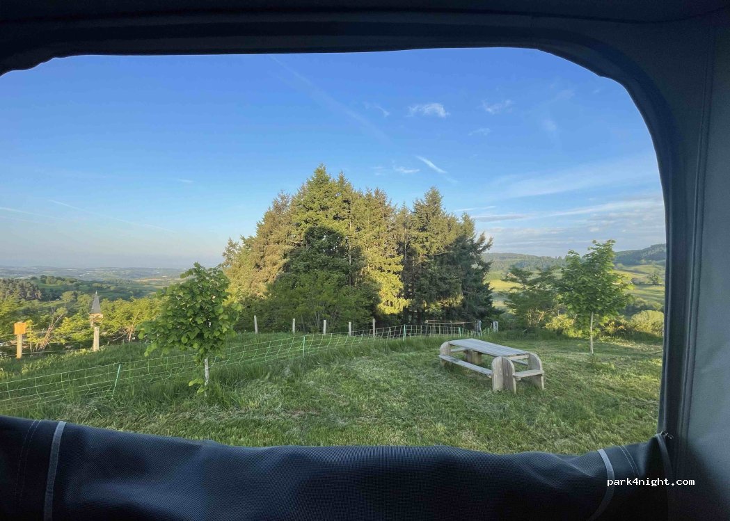 Super calme, vue magnifique sur le Forez. Certes, ni eau ni wc ouvert mais pour une nuit... Accès sans problème avec notre caravane de 1T et une simple Mégane. Avons trouvé sans difficulté une surface plane. Des tables pour les repas. Respectons ces lieux pour en préserver l'accès!