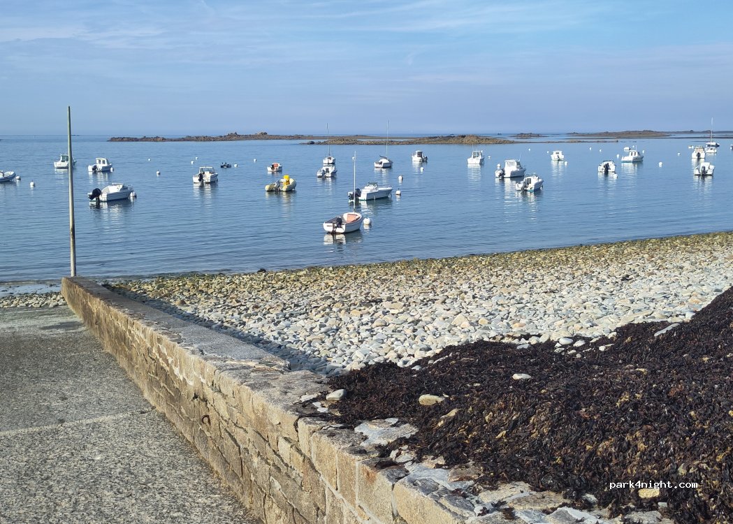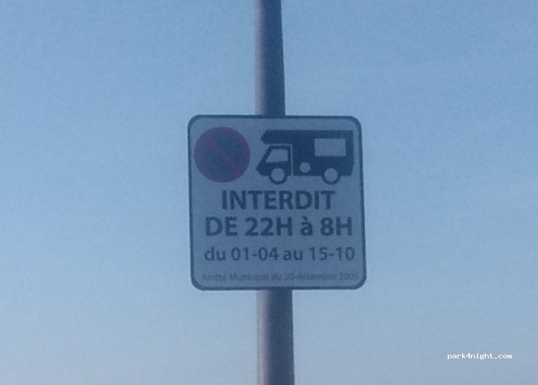 Car park by the sea, near the campsites. Nights prohibited from 01/04 to 15/10. Flat location, very quiet corner and public toilets.