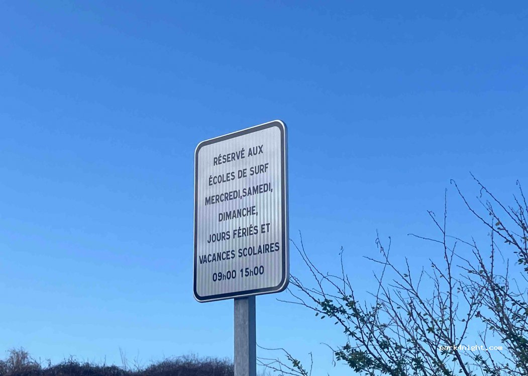 Parking opposite a surf spot. Possibility of swimming in the lagoon on the right (on the other side of the river). Concrete car park. !Some places are reserved for surf schools.