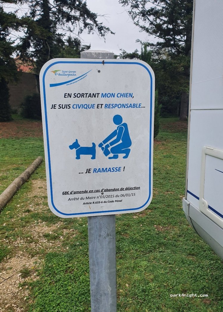 Parking next to the associative center quiet place despite the village hall next door possibility of leaving dogs on a leash but picking up excrement