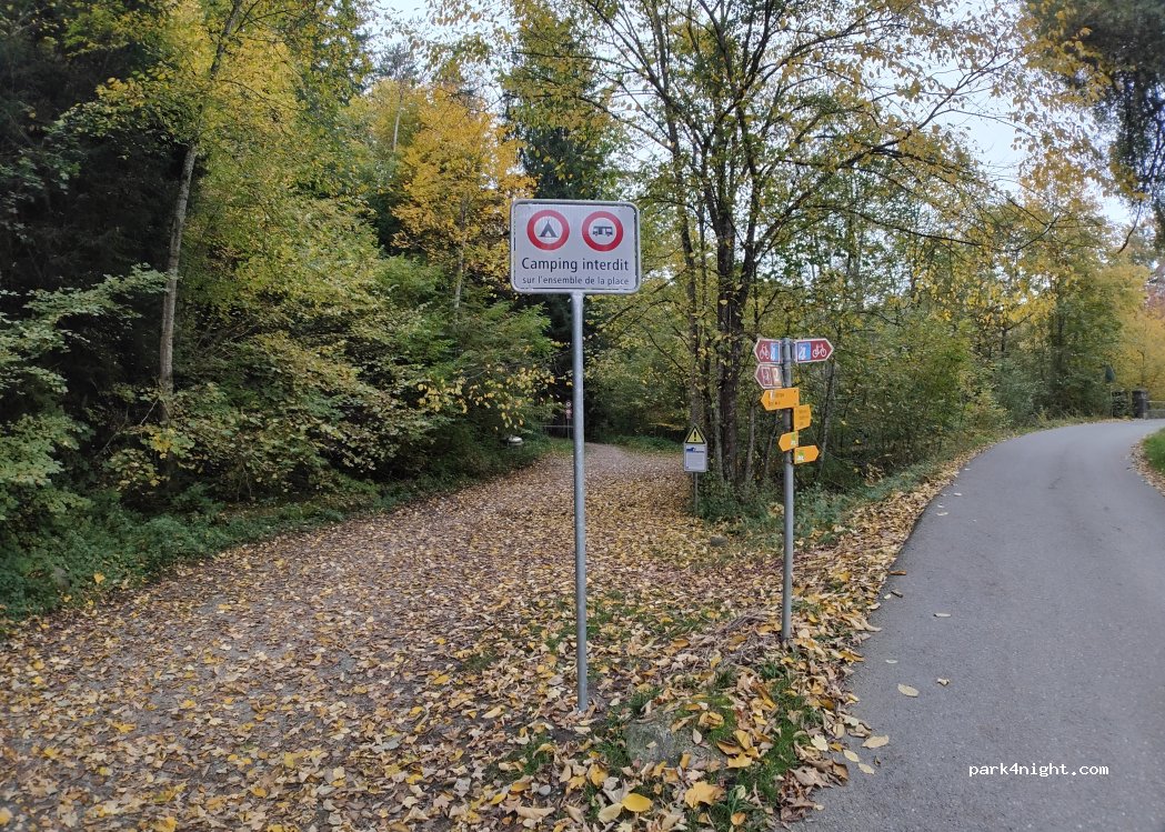 Grand parking à côté de la rivière. Relativement calme avec la route passant à côté. Près de Bulle et Gruyère, parfait pour visiter. Bémol: quelques déchets