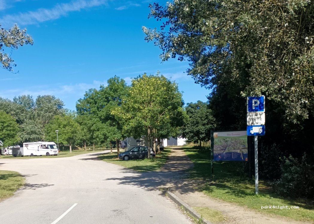 Aire de stationnement gratuite limitée à 72 heures. A proximité de la ville et commerces. Calme .