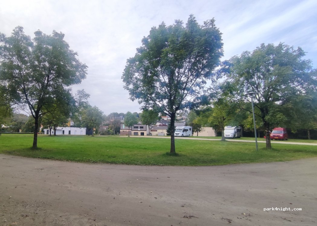 un parking cc ou nous sommes restés 2 nuits pratique pour visiter Oudon et son beau château de belles balades en vélo le carrefour a côté et aussi la boulangerie au près,malgré la route pas loin et le train a côté ce qui dérange pas la nuit pour dormir dommage qu'il n'y est de service il faut alle au camping merci a la municipalité
