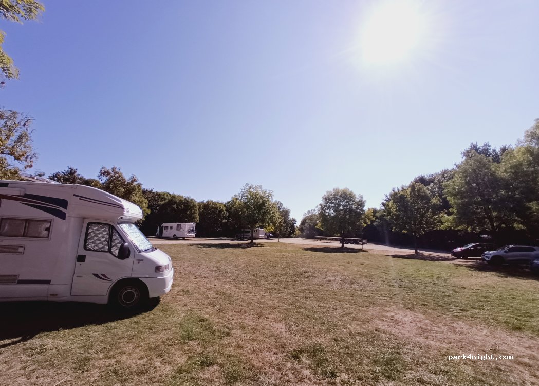 Parking en herbe. Proche du centre de la commune. Épicerie juste à côté. Plan d'eau, complexe sportif, euro vélo 6. Bien pour passer une nuit.