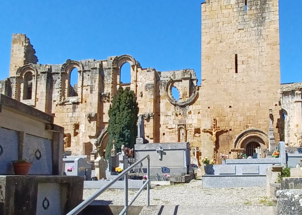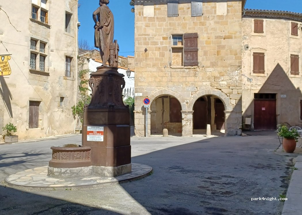 Le parking est très bien pour se garer avec n importe quel camping-car, pour la visite de ce très joli village médiéval, surtout ne passez pas par la route ,longez l ancienne gare et vous êtes en face le village avec un passage piéton.