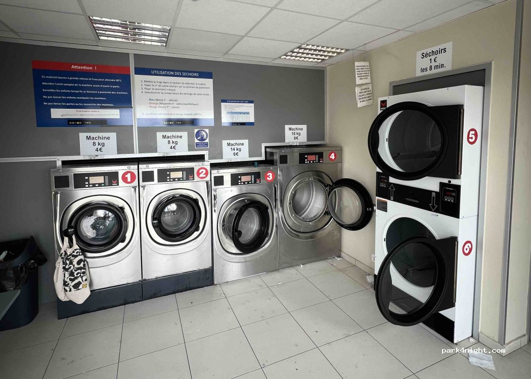 Laverie : 5€ la machine et 3€ le sèche-linge