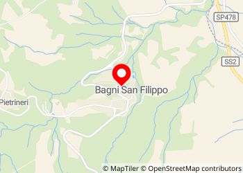 Parking strips along a wall near hot springs and a thermal bath. At Fosso bianco there are several pools with warm and hot water.