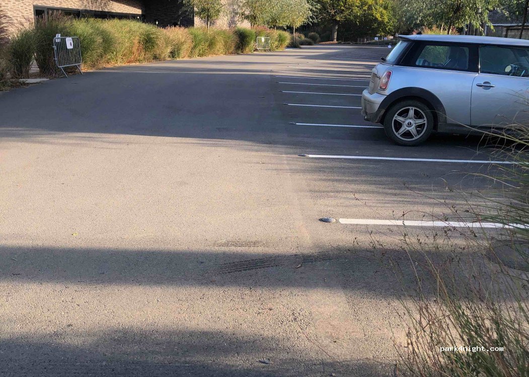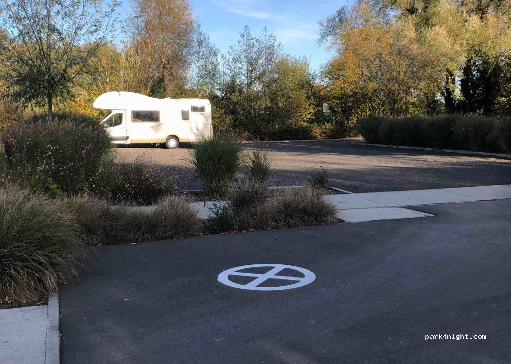Helemaal achteraan de parking is er plaats voor een camper. Harde ondergrond met steentjes maar is glooiend. Geen voorzieningen. Is enkel druk tijdens de ochtend en in de namiddag bij het afhalen van de kinderen. Is wel vlakbij een school. Je kan er mooie fiets en wandeltochten maken ( via knooppunten ). Er zijn geen bistro's of winkels.