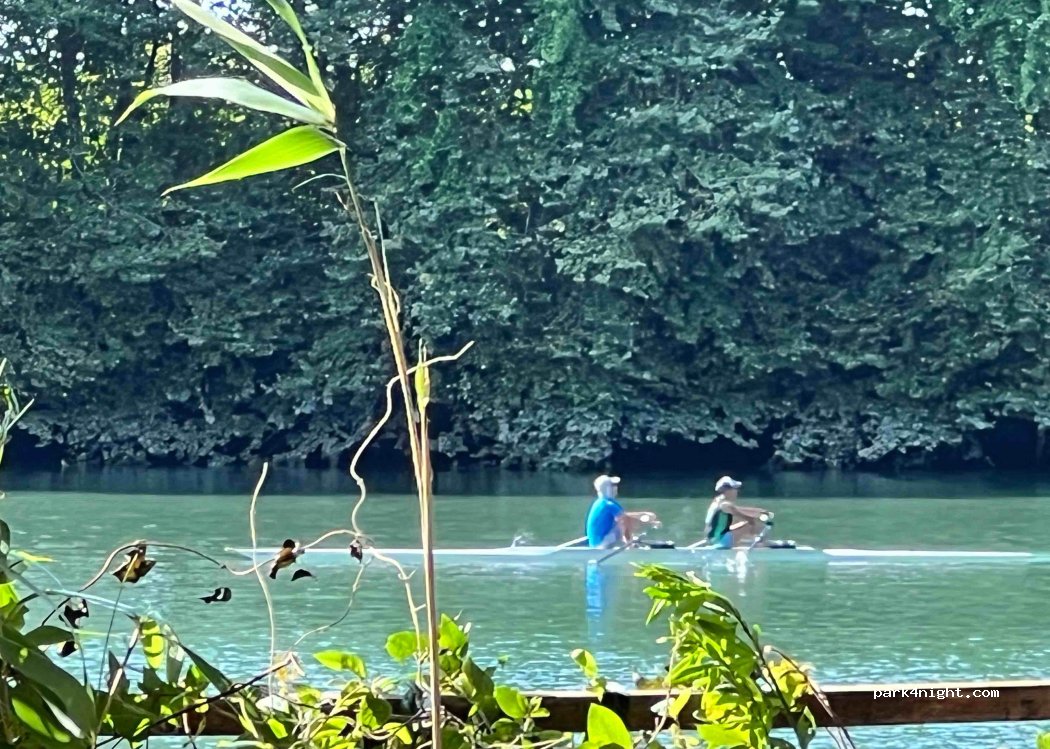 jolis emplacements au bord de l'eau sous les arbres. route fréquentée le matin et le soir mais calme la nuit. les tables de pique-nique sont accessibles uniquement à pied.