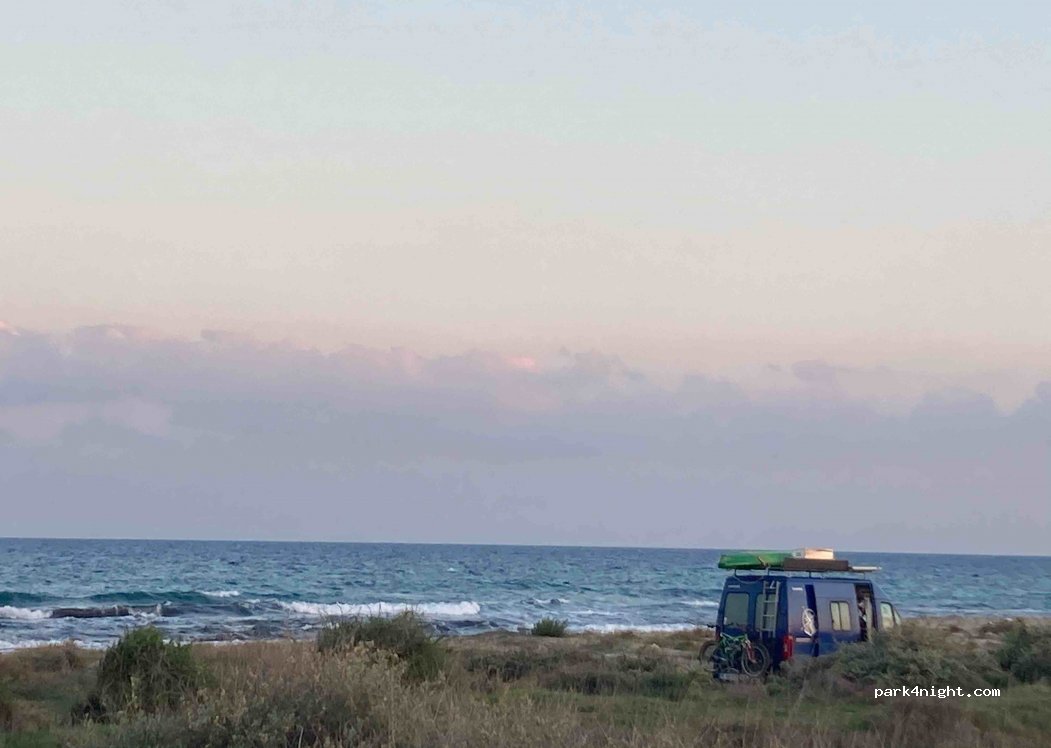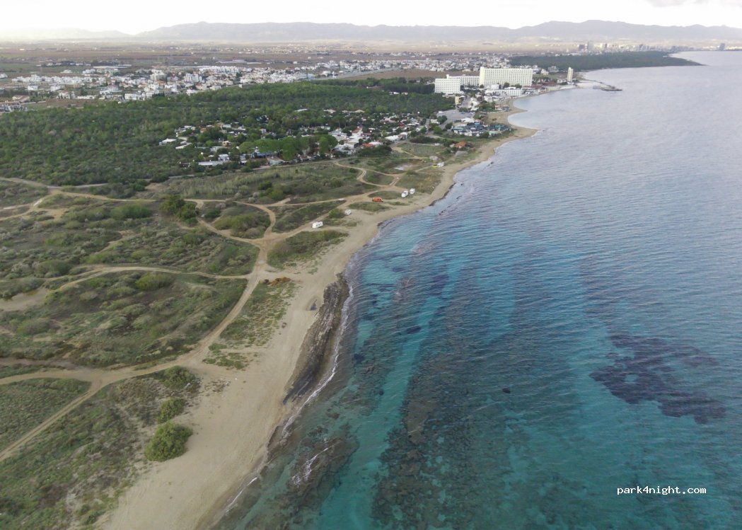 Nice place, nice sandy beach with a beautiful and quite warm sea. On Sundays many people come here to have a picnic and to celebrate, apart form that it’s pretty quiet with a few people visiting in the day. Use OpenStreetMap/Osmand to navigate, I have mapped all the tracks around the place. Good 4G reception from Southern Cyprus.