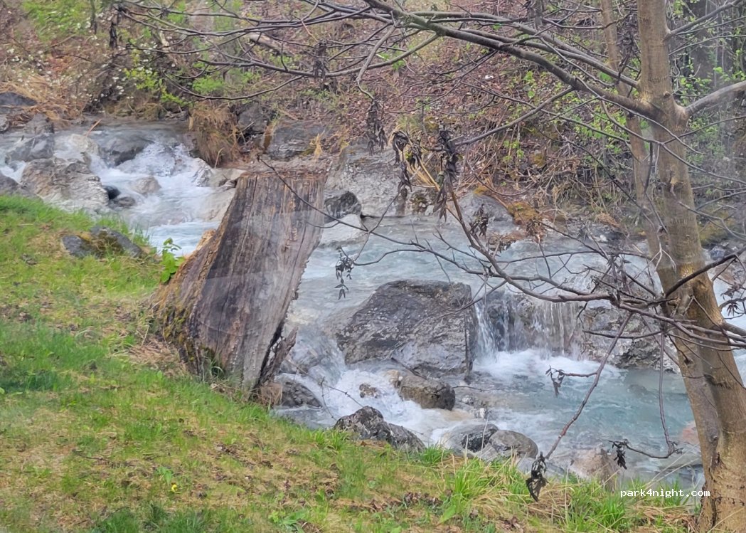 Small quiet parking lot bordered by a small torrent, nice to spend a night.