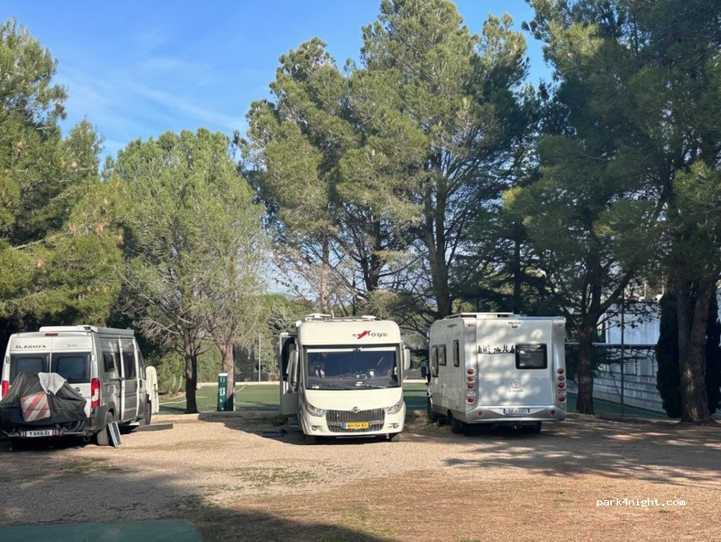 Es verfügt über 8 Stellplätze und ein Netzwerk von Dienstleistungen für Caravaning, wie z. B. die Entleerung von Grau- und Schwarzwasser, die Versorgung mit Wasser und Strom durch Bezahlung mit Token, die an der Bar des Sportzentrums und am Picknicktischbereich erworben werden können.