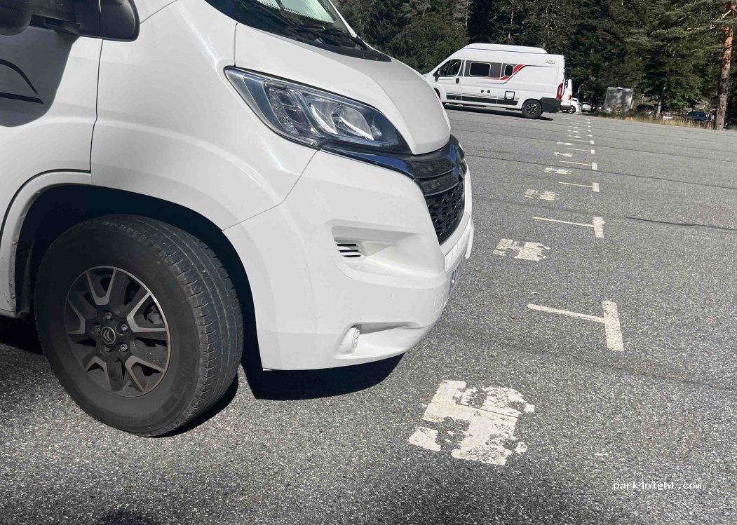 Uniquement pour stationner pas pour dormir. 8€ l'entrée si vous prenez un télésiège (payant) le parking est compris dedans et vous pouvez sortir avec le ticket du télésiège